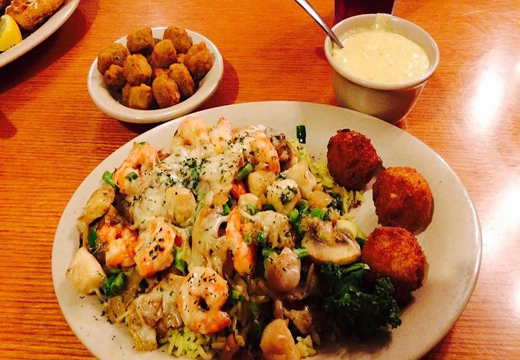 - Seafood Platter: A mix of fried shrimp, oysters, scallops, and fish served with a side of hushpuppies and fries.